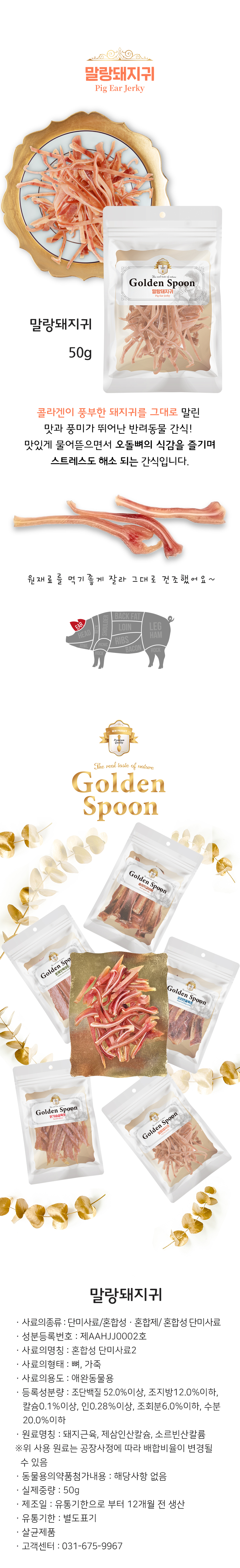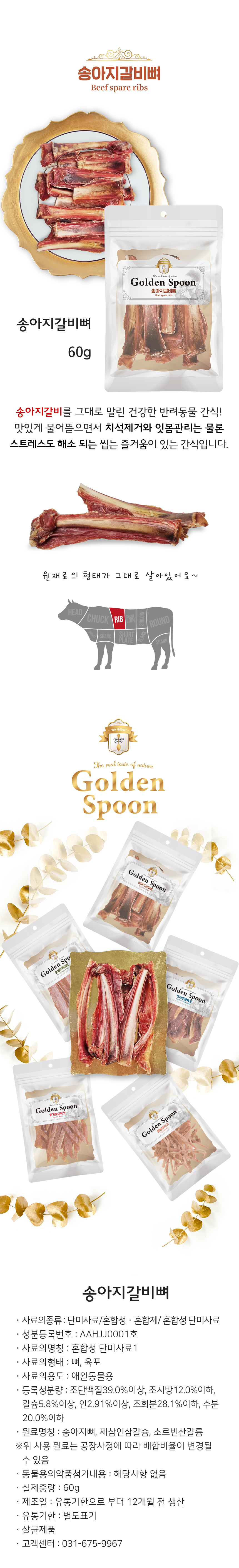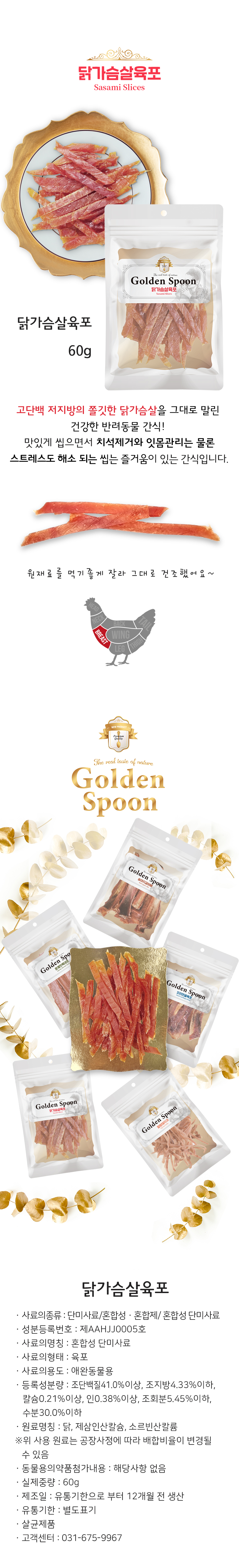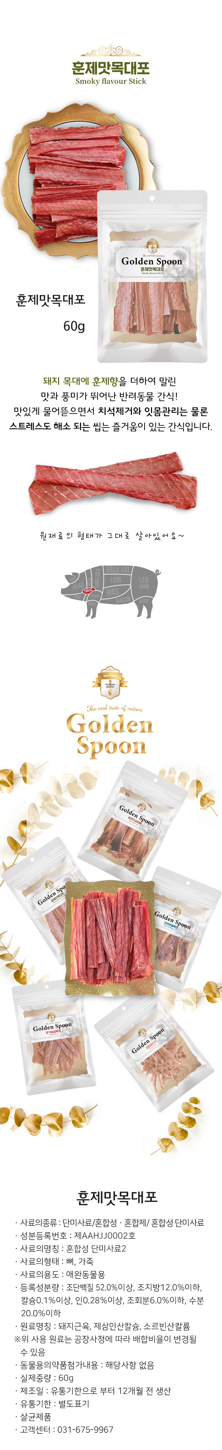 송아지갈비뼈, 오리연골육포, 닭가슴살육포, 훈제맛목대포, 말랑돼지귀